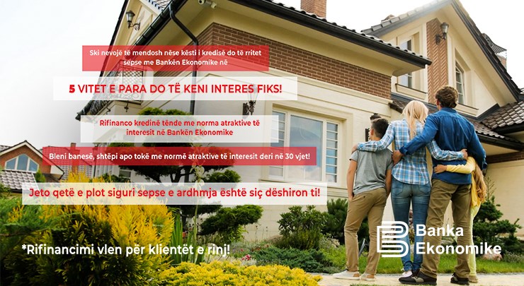 Ri-financo kredinë tënde me norma atraktive të interesit në Bankën Ekonomike, bleni banesë, shtëpi apo tokë me normë atraktive të interesit deri në 30 vjet!