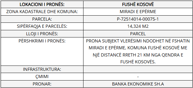 – Përshkrimin e pronës për të cilën ofertohet (Lokacioni, Zona Kadastrale, të dhënat e Parcelës)