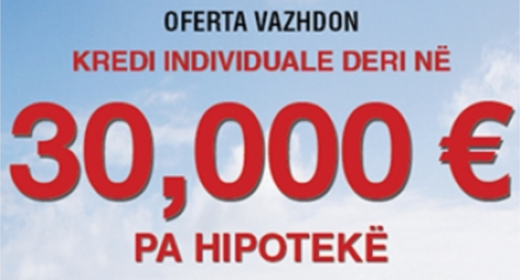 Kredi individuale deri në 30,000 Eur, pa hipotekë, afati i kredisë deri në 10 vjet.